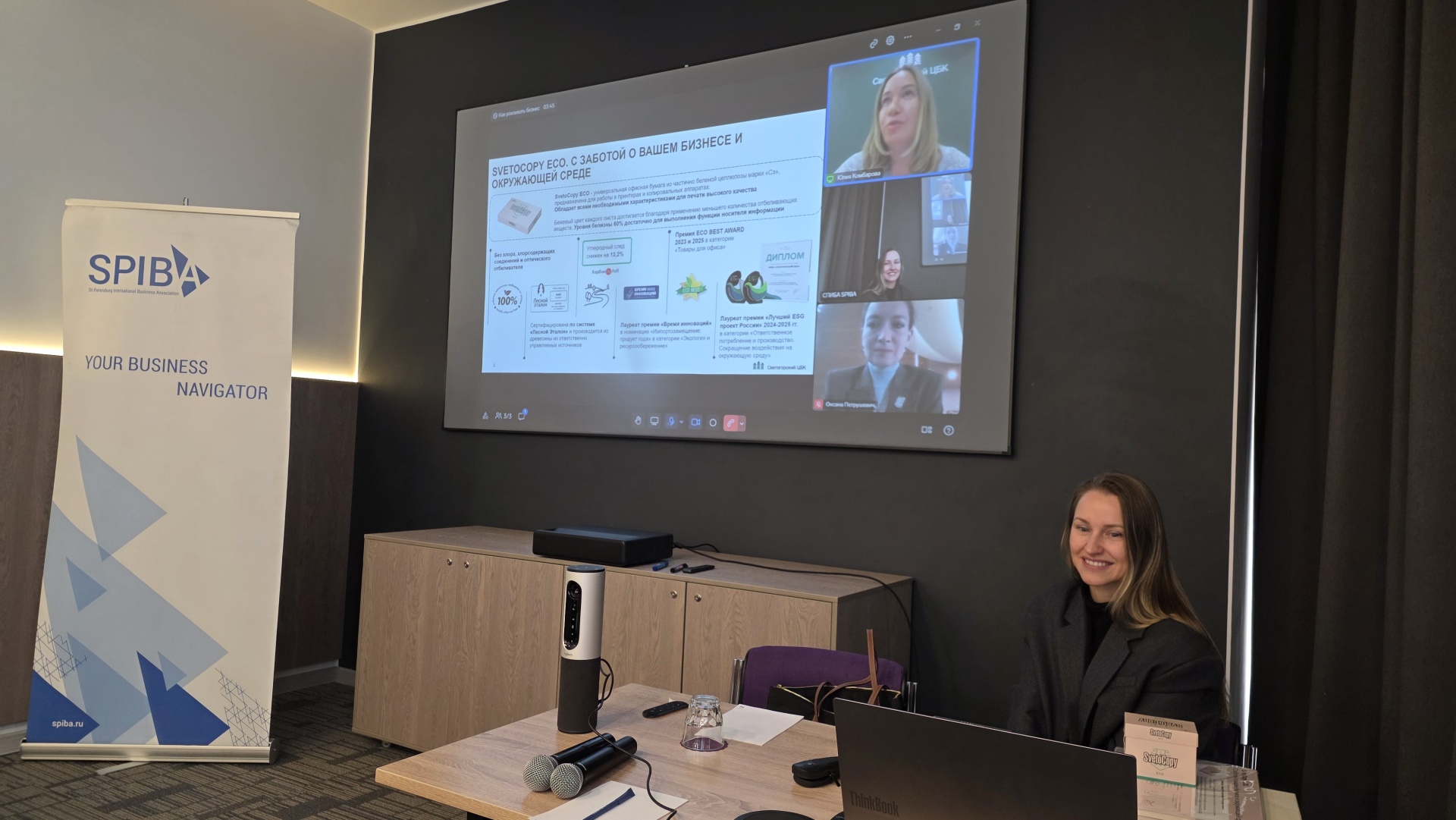 В рамках мероприятия, Юлия Комбарова, руководитель департамента маркетинга НПАО «Светогорский ЦБК», рассказала про «Светогорский ЦБК» и его продукцию, развеяла популярные мифы о производстве бумаги и представила результаты оценки углеродного следа SvetoCopy ECO, проведенной совместно с «КарбонЛаб». Данные подтвердили: экологичность не противоречит качеству. Углеродный след бумаги SvetoCopy ECO снижен на 13,2%* по сравнению со стандартной белой бумагой, при этом все характеристики для высококачественной печати сохранены.
